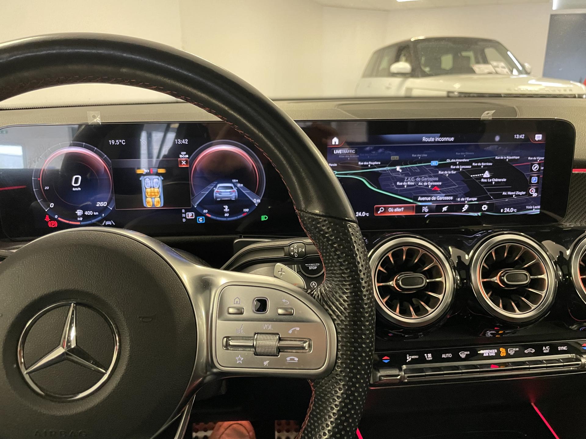 Système multimedia MBUX avec écran média tactile haute résolution (1 920 x 760 pixels) de 26 cm (10,25'') et instrumentation digitale avec écran de 18 cm (7") incluant les fonctionnalités élargies MBUX (profils personnalisés, fon